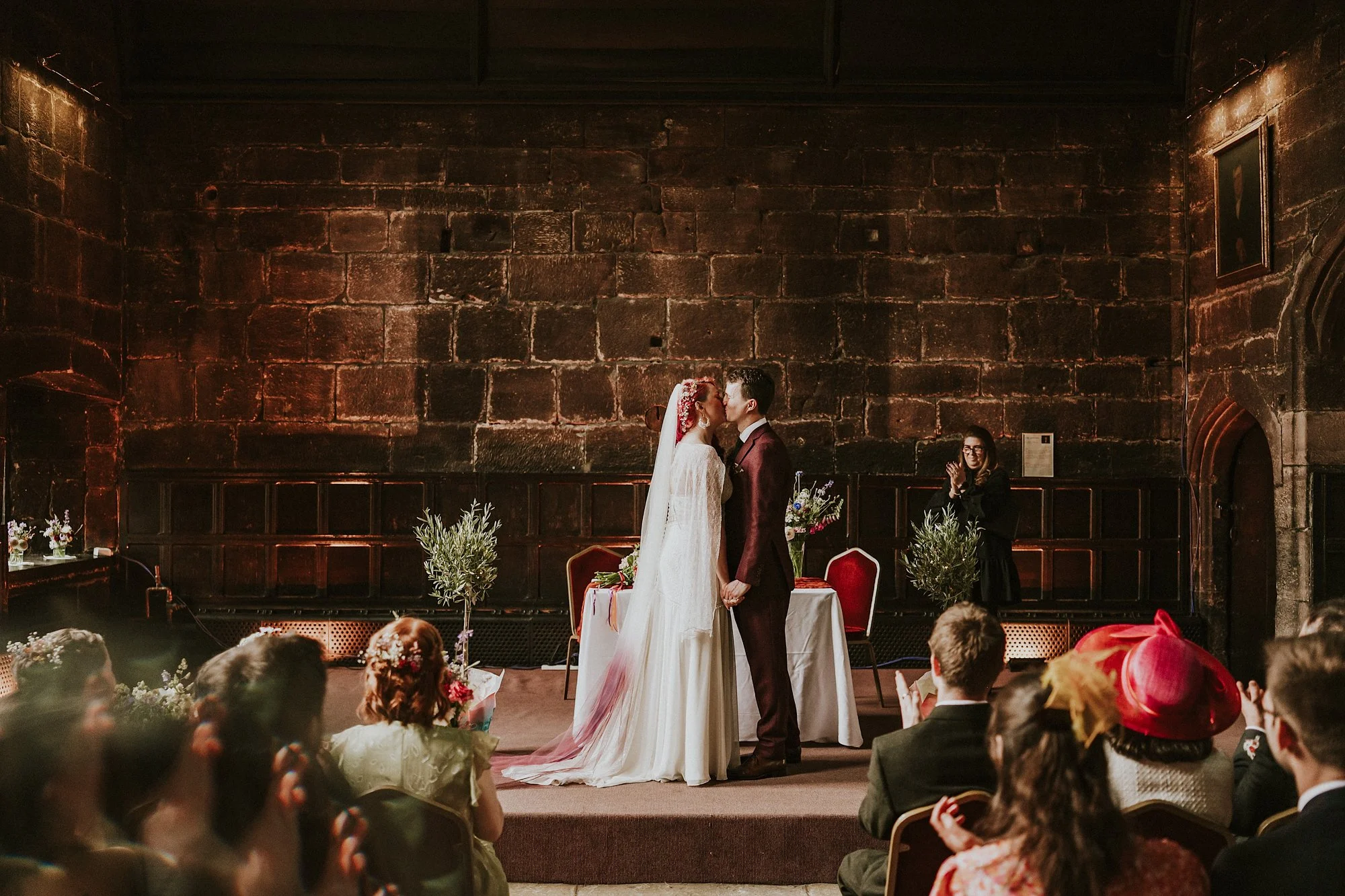 Heading over to the Chetham's Library wedding I was greeted by a building that was really frickin old & really frickin cool. So much so it had an instant atmosphere of historicaltingles when walking through those doors. These beaut humans got married in the Baronial Hall. So medieval I was ready to skid down the floor and give my Lute Solo like James Hendrix the 4th. What a beaut Chetham's Library wedding ceremony though. There's something about that weathered sandstone & high beamed ceilings that gave me all the feels.